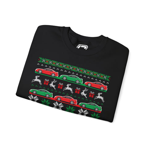 Ho, Ho, HORSEPOWER! As the season gets colder this Sweatshirt is here to warm your heart with the thrill of your favorite Pony Car. Whether you're dashing thru the snow or dashing for another cold one at your company's Tacky Christmas Sweater Party this sweatshirt will keep you warm and cool at the same time! Pick your favorite year model and rep your Mustang passion this Holiday Season!