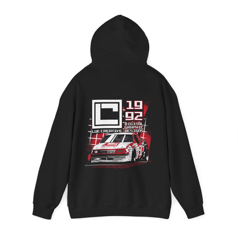 The Sun rises over a speedway, somewhere in the southeast, as the grid awakens. Drivers, Teams, Crew Chiefs emerge from garages to ready their cars, tools, and pit-boxes for today's action. There's a race to be run, laps to be turned, and 800hp of American Thunder to be unleashed, but before all of that is possible there has to be paint. A Scheme to attract the eye of the fan, to bring customers and interest to the brands emblazoned on your hood. Some think it's just paint, but we know it's the most important part. It's what takes your racecar from a 200mph blur to a 200mph billboard! At LUE Creative we wanted to imagine what a Fox Body T-Bird would've looked like with our branding. Retro transformed into a blocky digital version of the modern LC, this car would've held its own beside the greats of the era, making your eye dart thru the field from Davey Allison, to Bill Elliott, to this! Another Great Fox Body themed shirt from LUE Creative!
